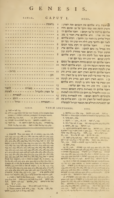 For textual criticism, the most important section of the page is the block of text at the bottom, which is the apparatus. To the right of “Cp 1, 1,” (lower left corner) which means “Chapter 1, Verse 1,” there is an “a” that corresponds to the “a” after בְּרֵאשִׁ֖ית in Genesis 1:1. The note says “Orig Βρησιθ vel Βαρησηθ (-σεθ),” which contains an acronym and Greek and Latin all together! Yes, textual criticism can be quite cryptic! This note is shorthand for, “In Origen’s Hexapla, the column with Hebrew transliterated into Greek contains three ways to render this word: Bareysith, Bareyseyth, and Bareyseth.” In other words, we don’t know exactly how the Hebrew word was pronounced in the third century CE (Origen’s time), but it was something close to these three ways of saying the word. A trained linguist would recognize that the only thing that is variable between the three Greek renderings is the vowel pronunciation, meaning that the consonantal Hebrew text (in this case, בראשית) is consistent and secure.[28]